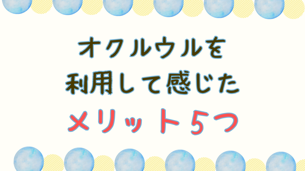 オクルウルのメリットは、お金をかけずに利用できることなんです!私がオクルウルを利用して感じたメリットは以下の5つです。