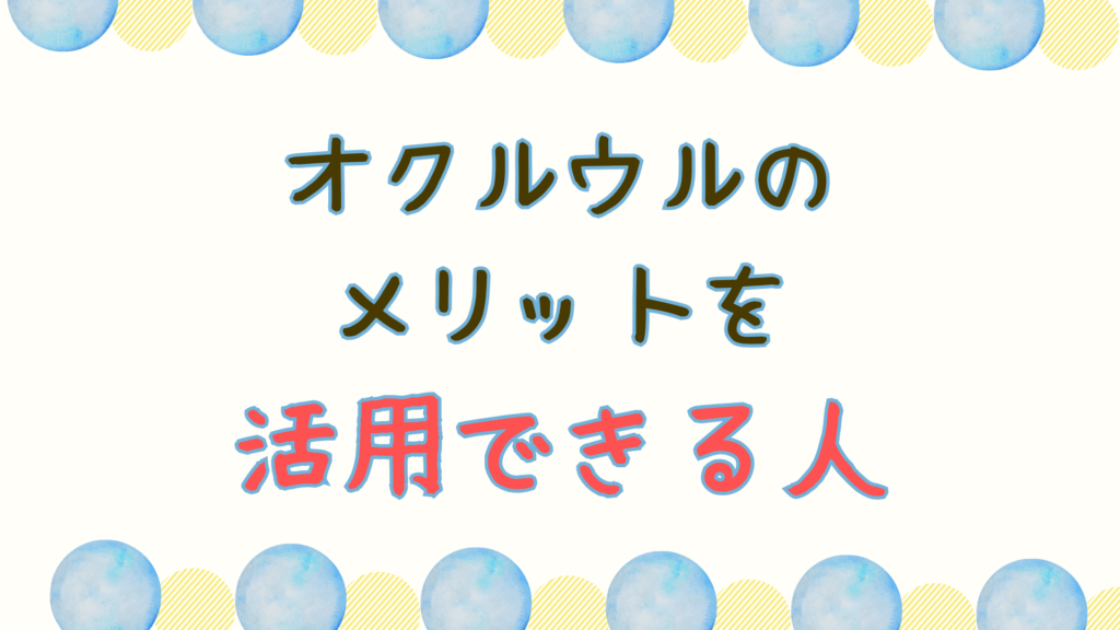 ここでは、オクルウルのメリットを活用しやすい5つのタイプの人をご紹介します。