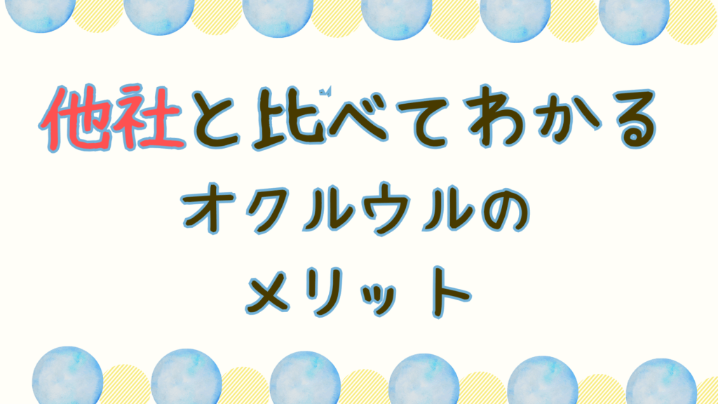 ここでは、他社と比べて際立つオクルウルのメリットを5つに分けてご紹介していきますね。メリットを比較することで、オクルウルの便利さや安心感がより明確にわかります。