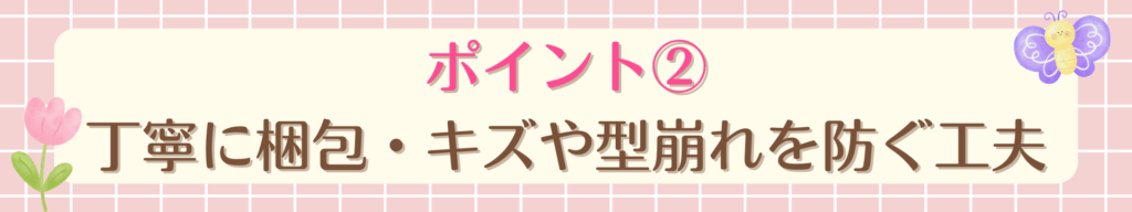 ポイント②:商品を丁寧に梱包し、キズや型崩れを防ぐ工夫をする