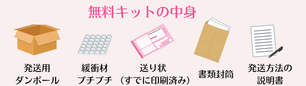 無料キットには発送用の箱・緩衝材・あらかじめ印刷された送り状などが含まれており、あなたは「売りたい商品を入れて箱を閉じるだけ」です。